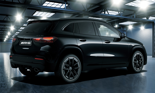 ▲メルセデスAMG GLA 35 4MATIC Black Masterpiece 価格:1000万円 全長4445×全幅1850×全高1585mm ホイールベース2730mm 車重1760kg 乗車定員5名 WLTCモード燃費11.2km/リットル 販売台数は80台限定