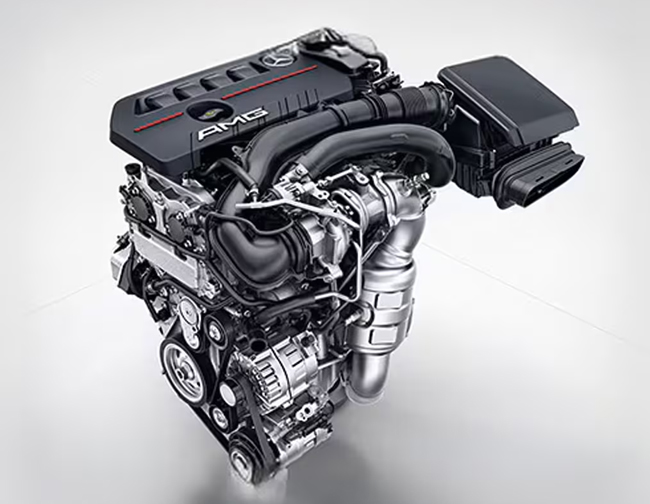 ▲パワートレインにはM260型1991cc直列4気筒DOHC直噴ガソリンツインスクロールターボエンジン(306ps/400Nm)+BSG/電気モーター(10kW/58Nm)+リチウムイオン電池+8速AMGスピードシフトDCTで構成するマイルドハイブリッドシステムを搭載