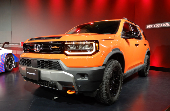 ▲ホンダ・パスポートはオフロード性能を向上させた上級グレードの「トレイルスポーツ エリート」を導入予定。パワートレインには3.5リットルV型6気筒DOHCエンジン(285hp/262lb-ft[355Nm])+10速オートマチックトランスミッションを搭載し、駆動機構には4WDを採用。写真は東京オートサロン2026に参考出品されたパスポート・トレイルスポーツ エリート