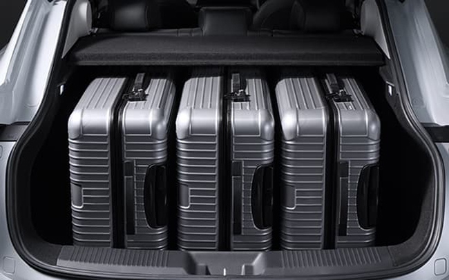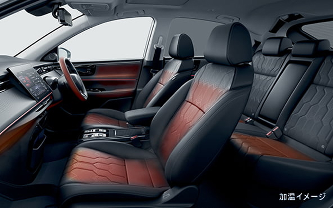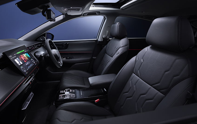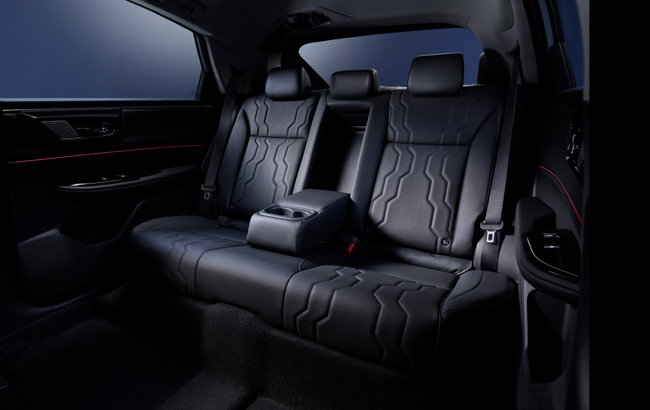 パッケージング面では、どのシートに座っても心地よさを感じられる空間を具現化。前席は高いアイポイントにより見晴らしのよい視界を確保し、合わせて運転席と助手席を隔てないセンターコンソールの構造として前席間のウォークスルーを可能とする。後席では、足もとのスペースを大きく確保しながらリクライニング機能を採用し、長時間の移動でも快適な乗車空間を実現。シートには本革表皮を張り、輻射熱を発するインテリアヒーターとシートヒーター、ステアリングヒーターを協調制御するインテリジェントヒーティングシステムを組み込んだ。乗員の開放感を高める電動スモークドガラスサンルーフも設定する。さらに、日常使いから週末のレジャーまで幅広いシーンに対応できるよう、大容量のラゲッジスペースを確保。利便性を高めるハンズフリーアクセスパワーテールゲート(予約クローズ機能付)も装備している。