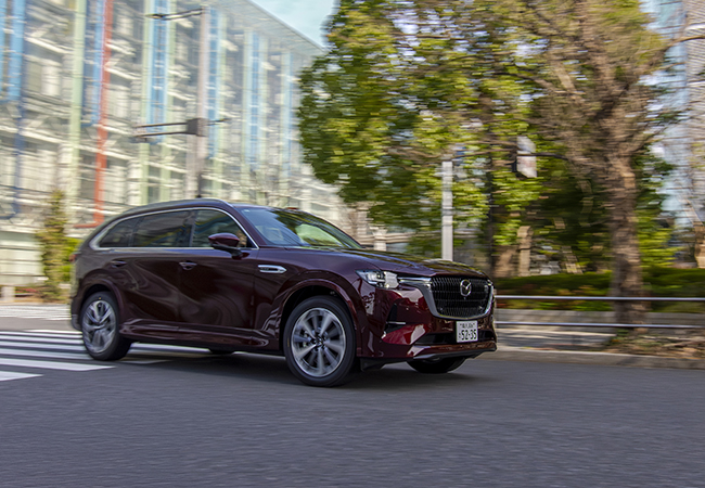 マツダCX-80 XDハイブリッド・プレミアムモダン/価格:8SAT 640万2000円。余裕ある3.3リッター直6ディーゼルターボ(254ps/550Nm)とモーター(16.3ps/153Nm)を組み合わせたパワーユニットは全域でパワフル&スムーズ