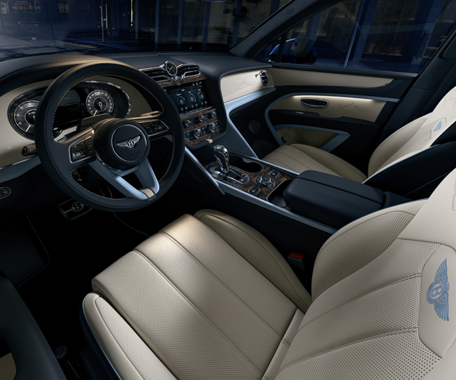 まず外装では、ベントレーのデザイン部門によりキュレーションされた8種類のボディカラー(Beluga、Granite、Pale Brodgar、Glacier White、Sequin Blue、Dark Sapphire、Verdant、Havana)を設定したうえで、ボディカラーと同色のロワーブライトウエアや、ブラック仕上げのダブルダイヤモンドフロントグリル、ダーククロームのポケットなどを専用装備。フロントフェンダー後部には“Artenara Edition”ロゴ入りウイングベントを組み込む。エクステリアのクロームパーツをブラックに置き換えるマリナーブラックラインスペシフィケーションも選択可能だ。足もとには存在感を高める新デザインの19インチアロイホイールのほか、グレー仕上げとダーククロームのポケットという組み合わせが美しい22インチのマリナーホイールなどを採用している。