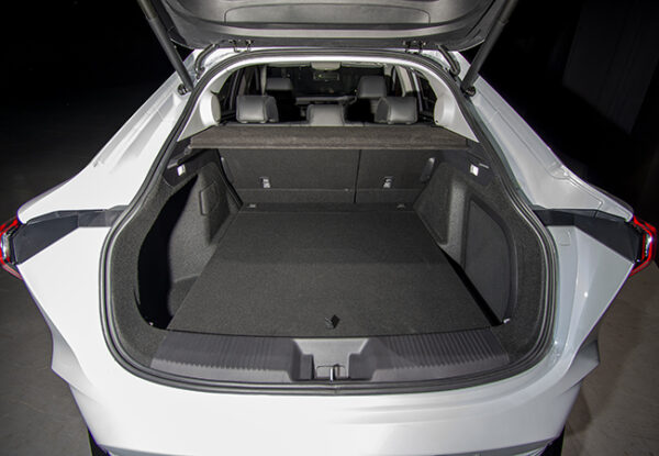 新型の魅力は、室内の広さと各種のアメニティである。キャビンは前後ともルーミー。後席足元は足を組んで座れるほどのゆとりを確保。フロアもフラットに仕上げられ、前席はサイドウォークスルーも可能だ。ラゲッジも広大。後席を倒すと最長1875mmのフラットスペースが出現する。