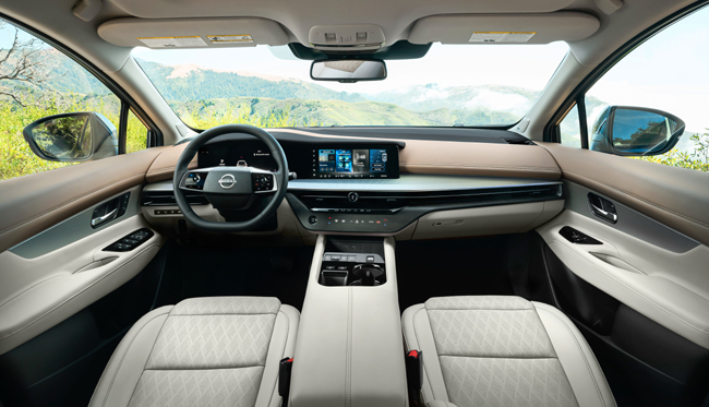 一方、インテリアは水平基調の伸びやかなインパネに、Googleビルトインの12.3インチマルチファンクションインフォメーションディスプレイや運転中でも操作感がわかるように振動するハプティクススイッチ、P/R/N/DMの変速スイッチ、マッサージ機能付きのフロントシートなどを装備。先進安全運転支援システムには最新のProPILOT Assist 2.1を設定した。