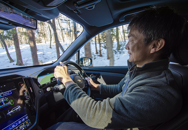 こうした滑りやすい路面を低速で走るときには、S:HEVのリニアなトルク特性が生きる。踏んだとおりに加速してくれて、前後バランスもよく、重めの車両重量も効いて、挙動が乱れにくい。歴代フォレスターで何度も雪道を走ったが、こんなに走りやすいと感じたのは初めてだった。