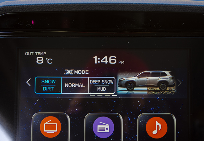 アイスバーンの上に湿った雪が降り積もった、かなり厳しい路面でもアクセルを踏んでステアリングを切ってさえいれば着実に前に進み、行きたい方向に行ける走りに改めて感心した。ヒルディセントコントロールを駆使すると、20km/h以下の一定の車速をキープして急な下り坂でも安心して降りることが可能。逆に滑りやすい路面から脱出して登坂したいときにはX-MODEのDEEP SNOW&MUDモードにすると安心。トラクションコントロールが切れるとともにスロットル特性を上げてトルクの立ち上がりを早くし、AWDの締結力も強まってトラクションを最大化することで脱出しやすくしてくれる。