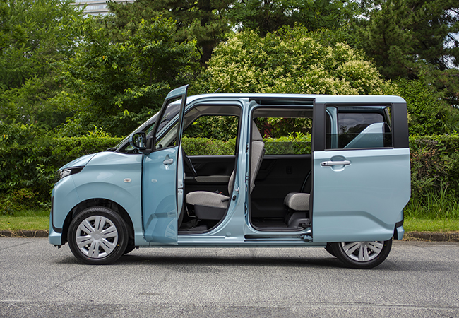 ムーヴは、1995年に初代が登場、以来30年にわたり「Kカーの真ん中」を追求してきたダイハツのコアモデル。累計販売台数は340万台を突破している。新型は「今の私にジャストフィット、毎日頼れる堅実スライドドアワゴン」がコンセプト。ファミリー層に人気のタント比で全高が100mm低く、スタイリッシュさと安定した走りを追求した。新型の特筆ポイントはリアのスライドドアで、良好な乗降性を筆頭にライバル以上のユーティリティをもたらしている。