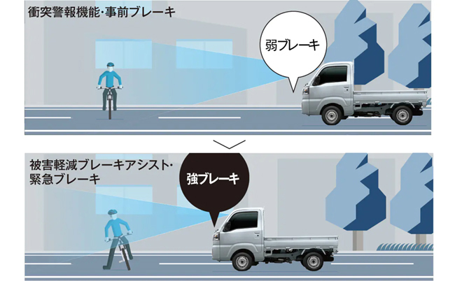 サンバートラックはダイハツからOEM供給を受ける軽商用車で、ハイゼットトラックの兄弟車に当たる。今回の改良は安全性の向上をメインに据えた。