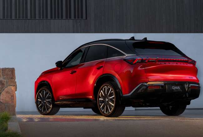 インフィニティQX65は、大胆なファストバックデザインを採用し、ラグジュアリーSUVの新たな魅力を打ち出したことが特徴。アイコニックなクロスオーバーSUVのFXから着想を得て、自信に満ちた美しい造形、丁寧に仕立てられた室内空間、そして心を高揚させるドライビング体験を通じて、インフィニティの新章を鮮明に体現する。