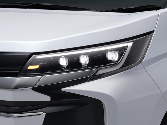 まずフロントセクションでは、ボディとの一体感を演出するデザインに変更。新造形のプロジェクター式LEDヘッドランプ(マニュアルレベリング機能付)+LEDターンランプ+LEDクリアランスランプを全車に標準装備するとともに、S-Zには新造形のプロジェクター式LEDヘッドランプ(オートレベリング機能付)+LEDターンランプ+LEDクリアランスランプ(デイライト機能付)をオプションで設定して、目元を際立たせるスマートなマスクを創出する。また、全グレードでフロントグリルのメッキ部位をメッキモール+ボディカラー共色に一新。ボディカラーには新色のニュートラルブラックとアーバンロックを全グレードに追加設定した。