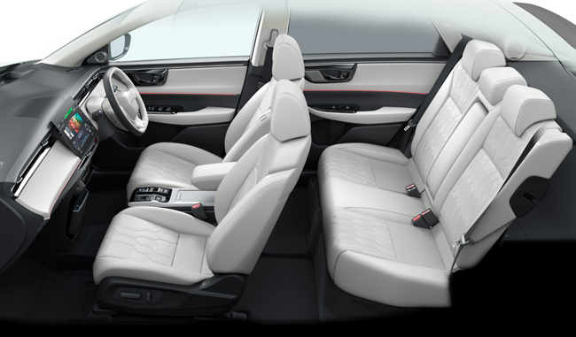 パッケージング面では、どのシートに座っても心地よさを感じられる空間を具現化。前席は高いアイポイントにより見晴らしのよい視界を確保し、合わせて運転席と助手席を隔てないセンターコンソールの構造として前席間のウォークスルーを可能とする。後席では、足もとのスペースを大きく確保しながらリクライニング機能を採用し、長時間の移動でも快適な乗車空間を実現。シートには本革表皮を張り、輻射熱を発するインテリアヒーターとシートヒーター、ステアリングヒーターを協調制御するインテリジェントヒーティングシステムを組み込んだ。乗員の開放感を高める電動スモークドガラスサンルーフも設定する。さらに、日常使いから週末のレジャーまで幅広いシーンに対応できるよう、大容量のラゲッジスペースを確保。利便性を高めるハンズフリーアクセスパワーテールゲート(予約クローズ機能付)も装備している。