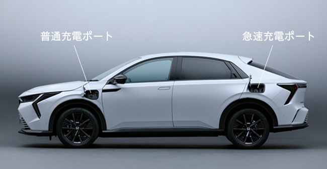 パワートレインについては、最高出力150kW(204ps)/4621~4900rpm、最大トルク310Nm/90~4621rpmを発生する電動モーターに、総電力量68.8kWhのリチウムイオン電池を搭載。一充電走行距離はWLTCモードで535km、交流電力量消費率は同モードで134Wh/kmを実現する。また、SPORT/NORMAL/ECON/SNOWの4種類から選択できるドライブモードを設定。パドル操作でアクセルオフ時の減速度を3段階に調整できる減速セレクターも配備した。充電に関してはAC普通充電とDC急速充電に対応。普通充電ポートは車両左側の前部に、急速充電ポートは後部に配置し、CHAdeMO 80kWの急速充電では約40分で充電が完了する。給電機能も組み込み、別売のAC外部給電器を使えばクルマから手軽に交流100Vの電気が取り出せ、家電の使用を可能(最大1500W 15A)とした。