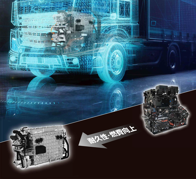 ▲FCEVの普及に向けては車両価格の高さも課題。いすゞは車両構造の最適化や製造プロセスの見直し、トヨタは燃料電池に使われるセルの設計や製造プロセスの革新により、コスト削減に向けての取り組みを推進していく