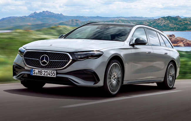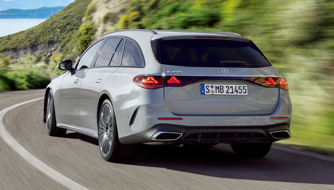 ▲メルセデス・ベンツE200ステーションワゴン スポーツNight Edition 価格:992万円 全長4960×全幅1880×全高1470mm ホイールベース2960mm 車重1870kg 乗車定員5名 WLTCモード燃費13.9km/リットル