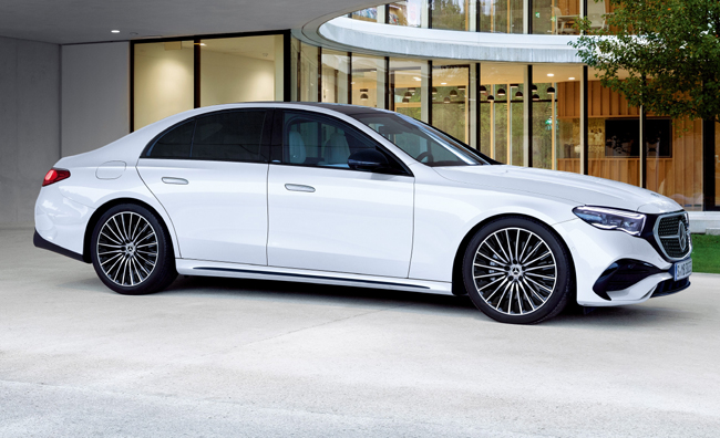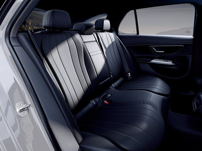 シャシー面では、E200およびE220dに新たな有償オプションとして、車速や走行条件に応じてばね定数、減衰力、車高を自動的に調整する電子制御式エアサスペンション「AIRMATICサスペンション」と、速度域に応じて後輪も操舵することで走行安定性と取り回しを向上させる「リア・アクスルステアリング」が付属する「ドライバーズパッケージ」を設定。E200ステーションワゴンとE220dステーションワゴンでは「AIRMATICサスペンション」を単独オプションとして選択することもできる。