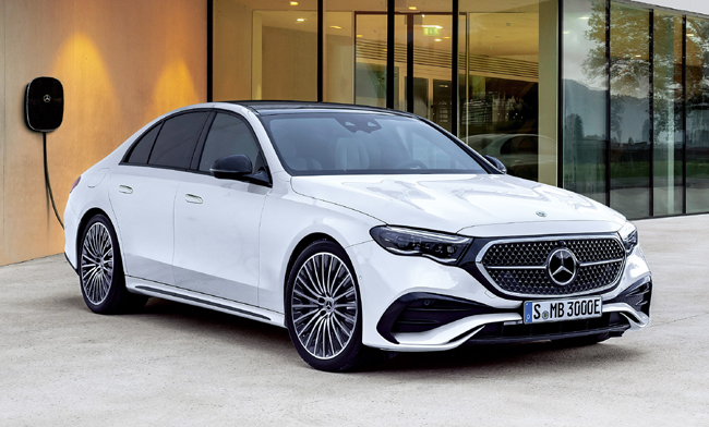▲メルセデス・ベンツE350e スポーツNight Edition 価格:1028万円 全長4960×全幅1880×全高1485mm ホイールベース2960mm 車重2170kg 乗車定員5名 EV走行換算距離(WLTCモード)106km、燃料消費率(WLTCモード)12.6km/リットル