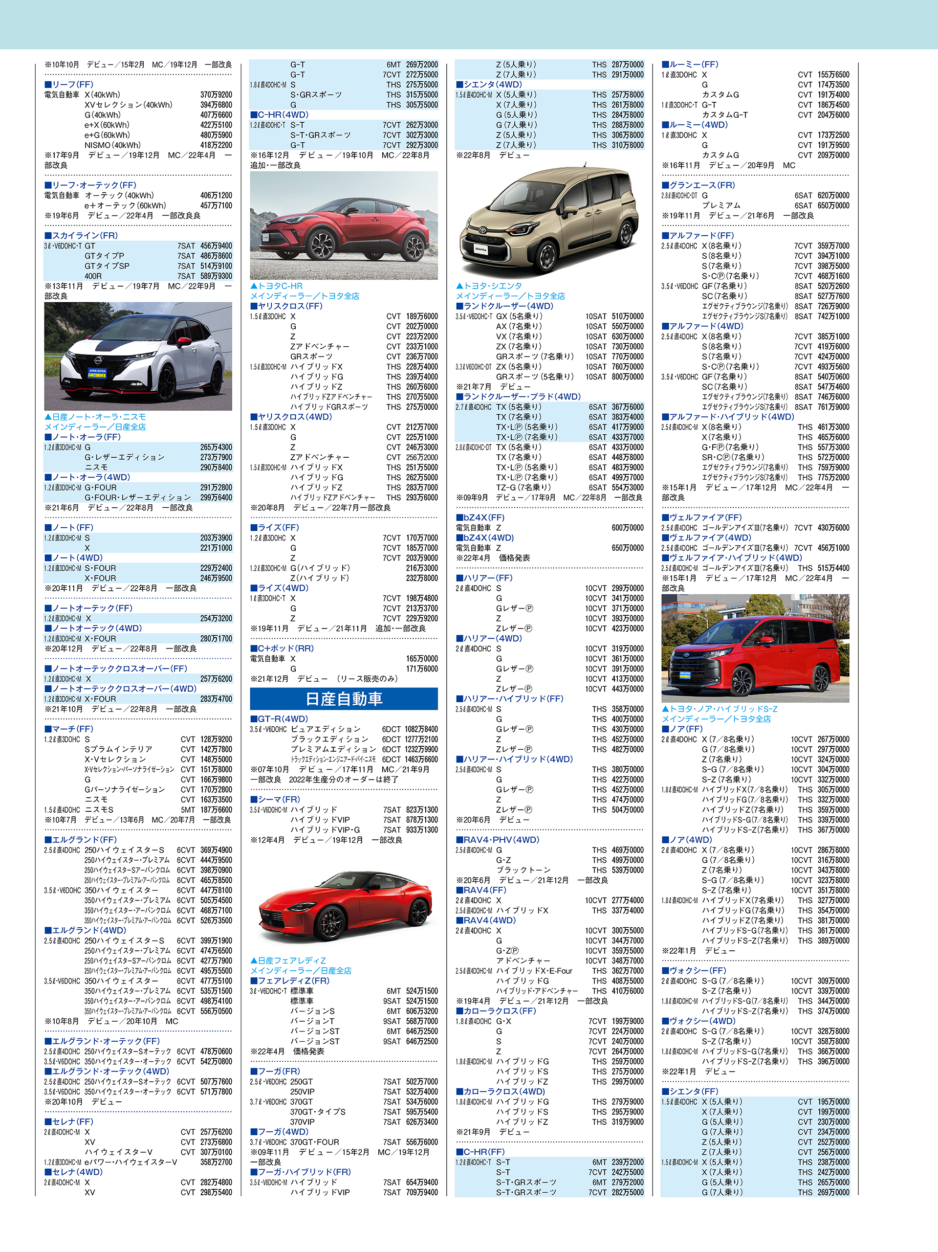 新車価格表(国産車・2022年9月25日現在)