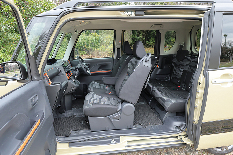 2)タントが本来持つ走りのよさや使い勝手のよさはそのままに、撥水シートなどアウトドアレジャーの際に便利なアイテムを装備