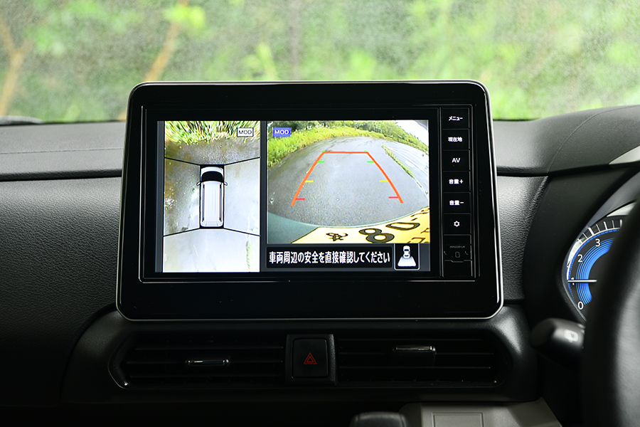 そして、最低地上高160mmとアプローチアングルにこだわったデザインは、木の根などで路面が凸凹しているキャンプ場でも威力を発揮。お腹を擦る心配はありません。なおかつ、アラウンドビューモニターは、「こういうときに役に立つんだな」ということを実感させられます。