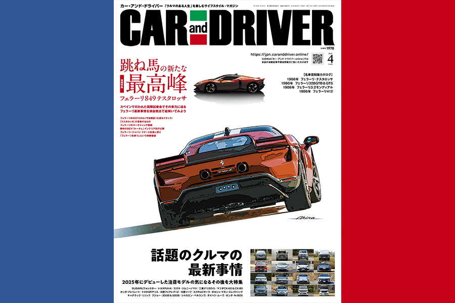 2026年4月号は、最新のフェラーリ849テスロッサにスペインで試乗し、その実力を徹底紹介。「テスタロッサ」という名に息づく跳ね馬の精神と情熱とは何か、フェラーリのマーケティング戦略や最新事情などを深掘りした。特集は「話題のクルマの最新事情」と題し、2025年にデビューした注目モデル16台の気になるその後をレポートする。