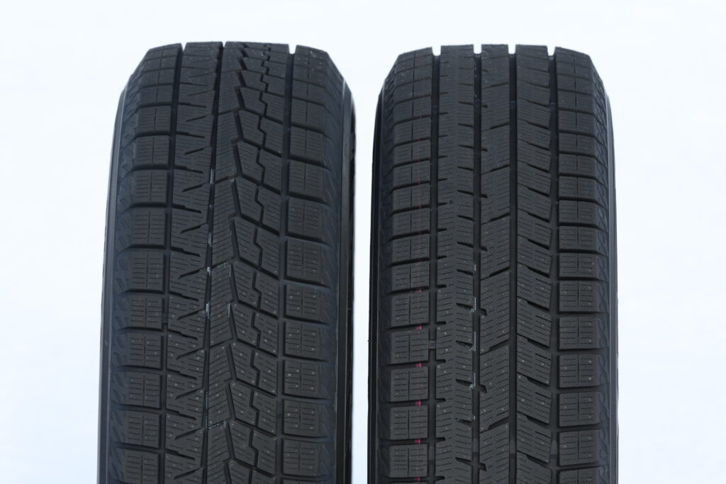 アイスガード8は写真でもわかるとおり旧型比でトレッド幅を広げて接地幅を拡大。ブロックも大型化してしっかり接地するように改良した。これらにより車重の重いクルマへの適合性がアップしたと考えられる。