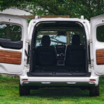 新設定のカングー デコパネルは、カングーの代名詞ともいえる観音開きのダブルバックドアの左右インナーパネルに貼付して、より個性を際立たせる専用ステッカーで、価格は1万6500円(工賃別)する。ステッカーはDIY風の木目や合板、定番のトリコロールフラッグやギンガムチェック、歴代カングーの線画、愛らしいフレンチブルドッグ、鮮やかなグリーンの森、コンクリート&付属ステッカー、幾何学模様、レトロな花柄という計10種類をラインアップした。