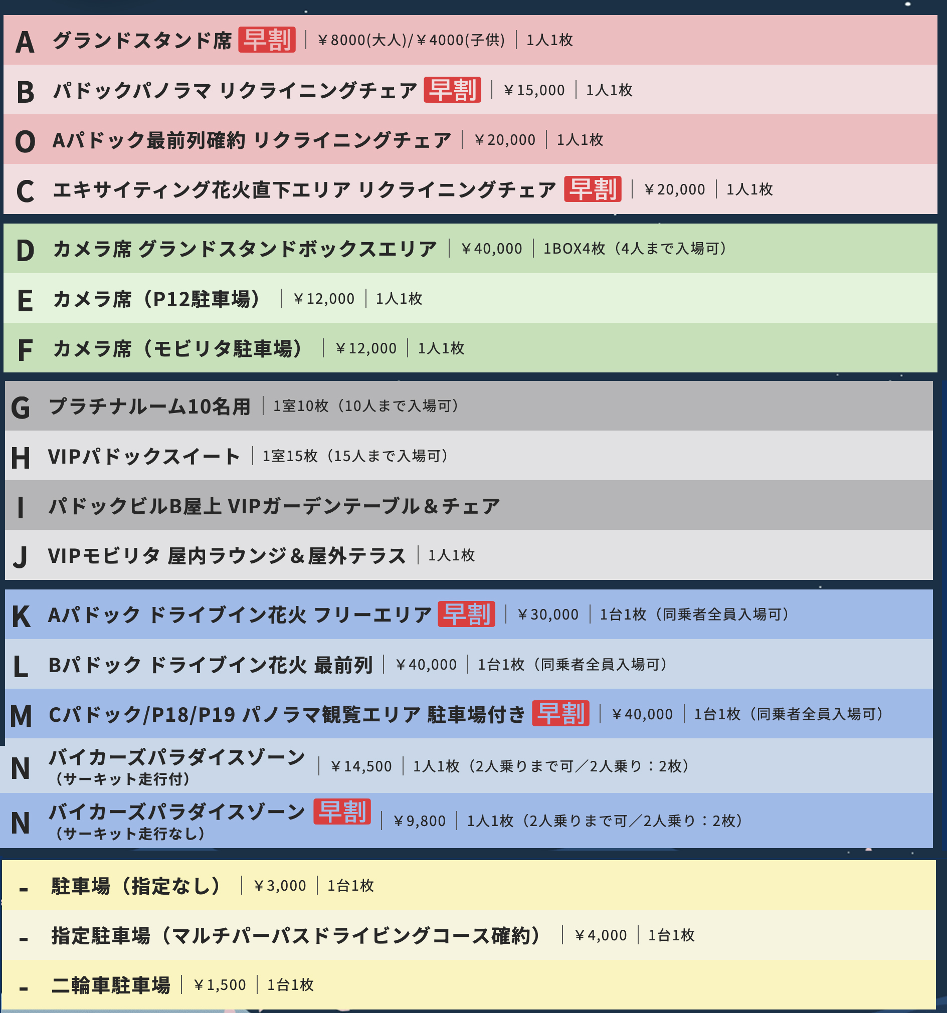 (L)Bパドック最前列確約 ドライブイン花火(観覧スペース付)