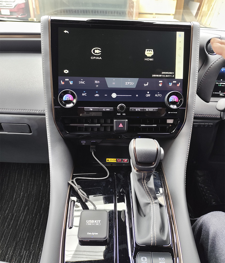HDMI出力の一例を挙げると、AmzonのFire Stick TVやDVDプレイヤーなど。ハイクオリティなプログラムを車内で視聴する際にUSBKITがあると便利だ。