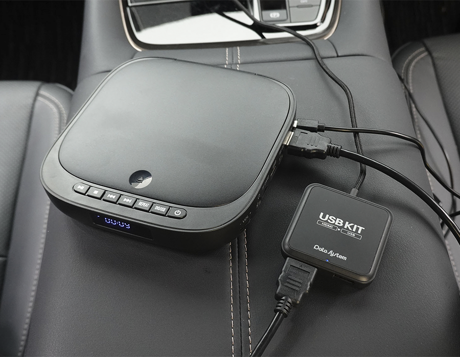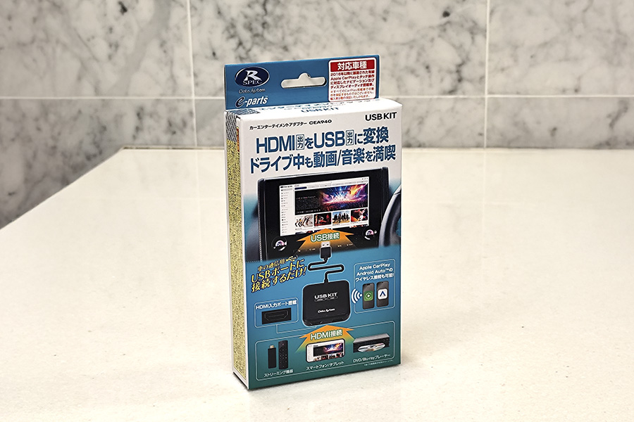 この製品は、HDMI出力をUSB出力に変換し、クルマのUSB端子を通じてドライブ中でもゲストに動画やエンタメプログラムを視聴してもらえるようにするアイテムだ。