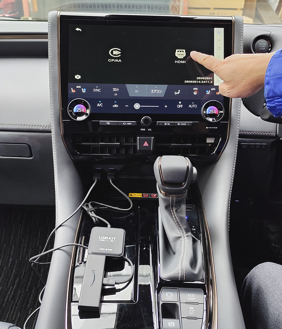 いずれにしても特別なセッティングは不要で、すぐに使えるのがうれしい。パッケージから取り出して、数分後には車内ディスプレイにHDMI接続したメニューが視聴できる。