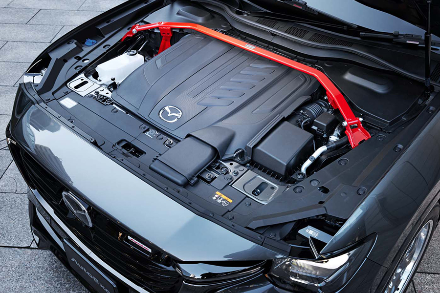機能性を高めるためのアイテムとして、左右4本出しスポーツマフラー(13万4200円、ディーゼルハイブリッド車用)、ローダウンスプリング(6万8200、車高マイナス25㎜)、ストラットタワーバー(4万1800)やセンターフロアバー(3万5200円)などがある。