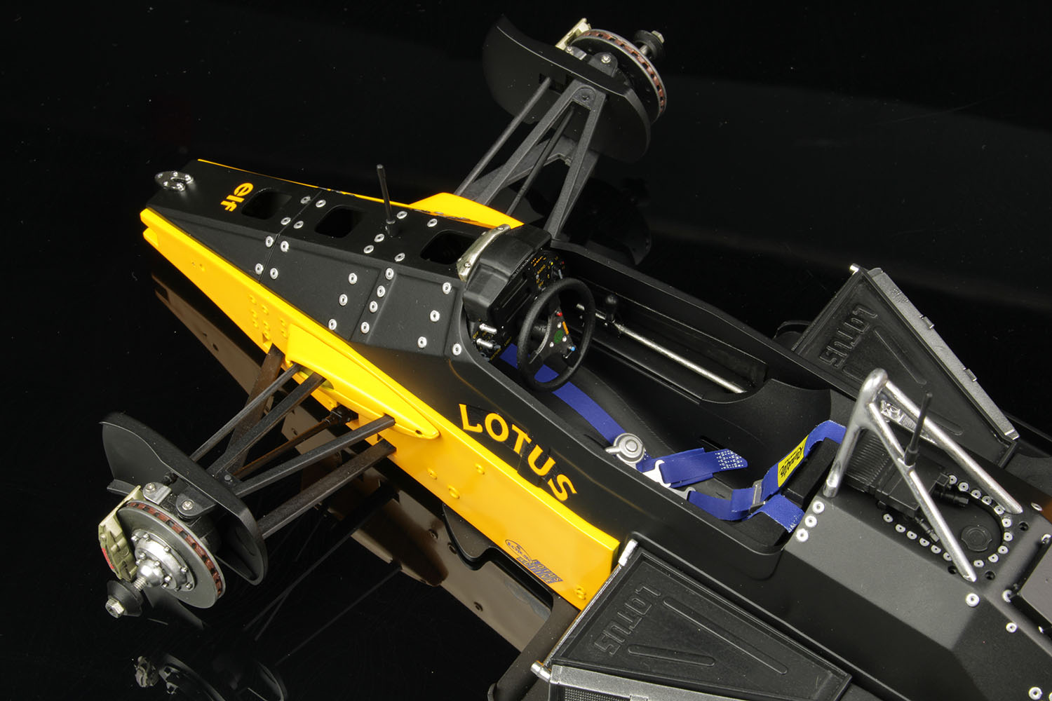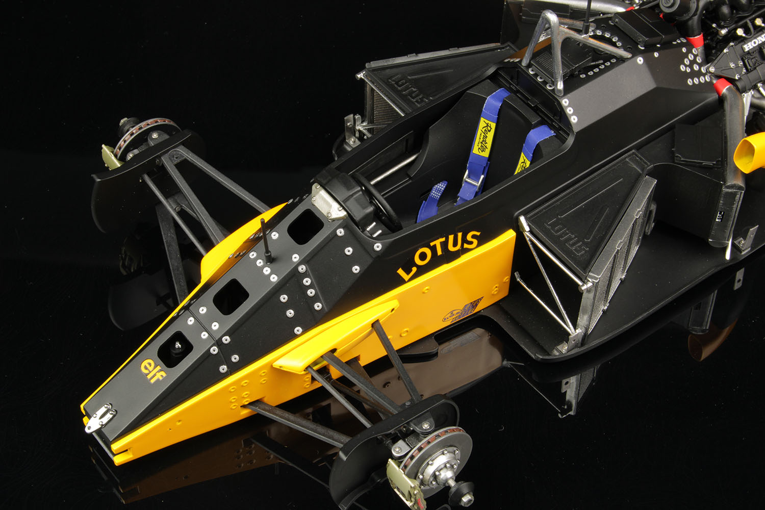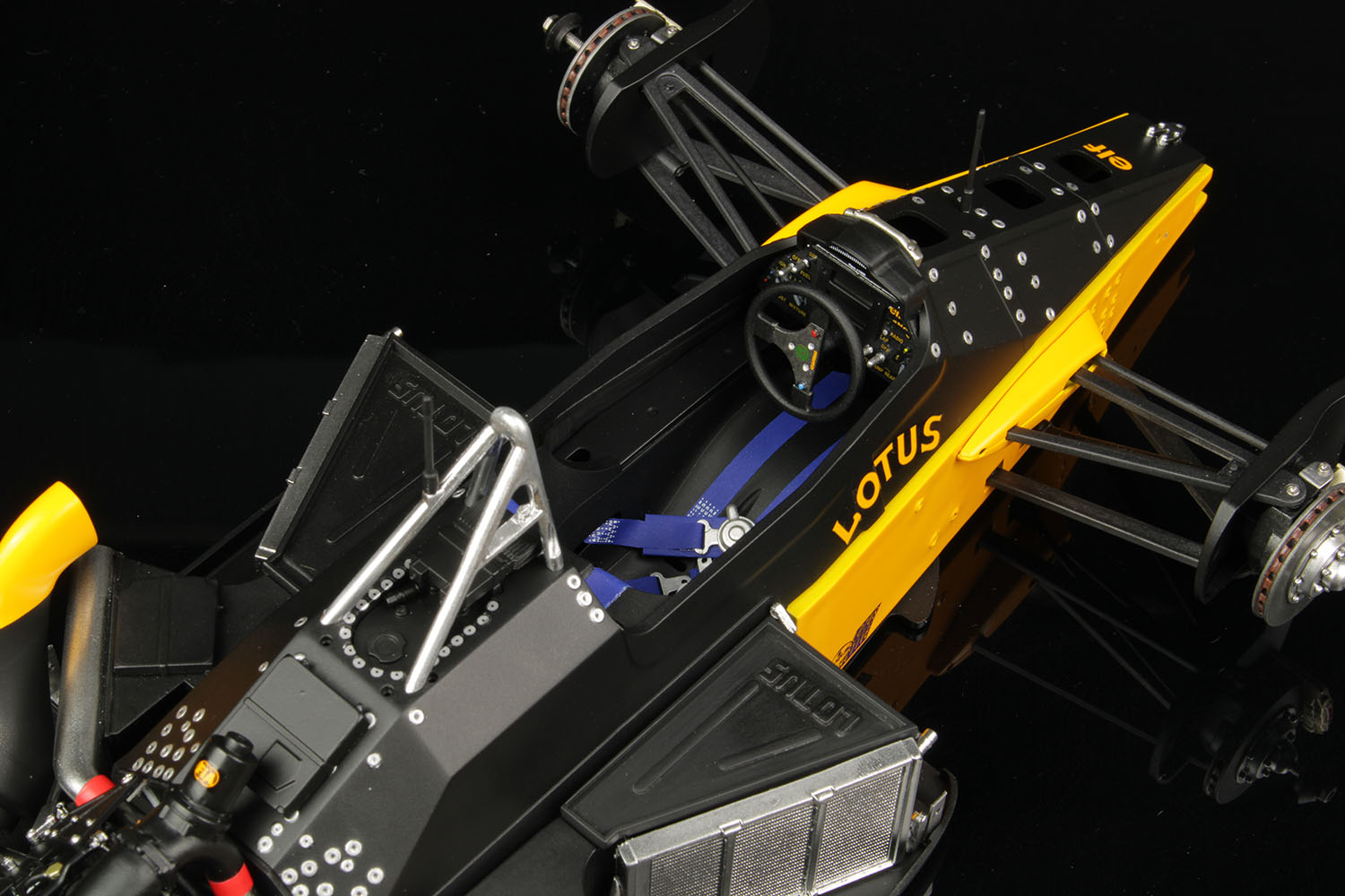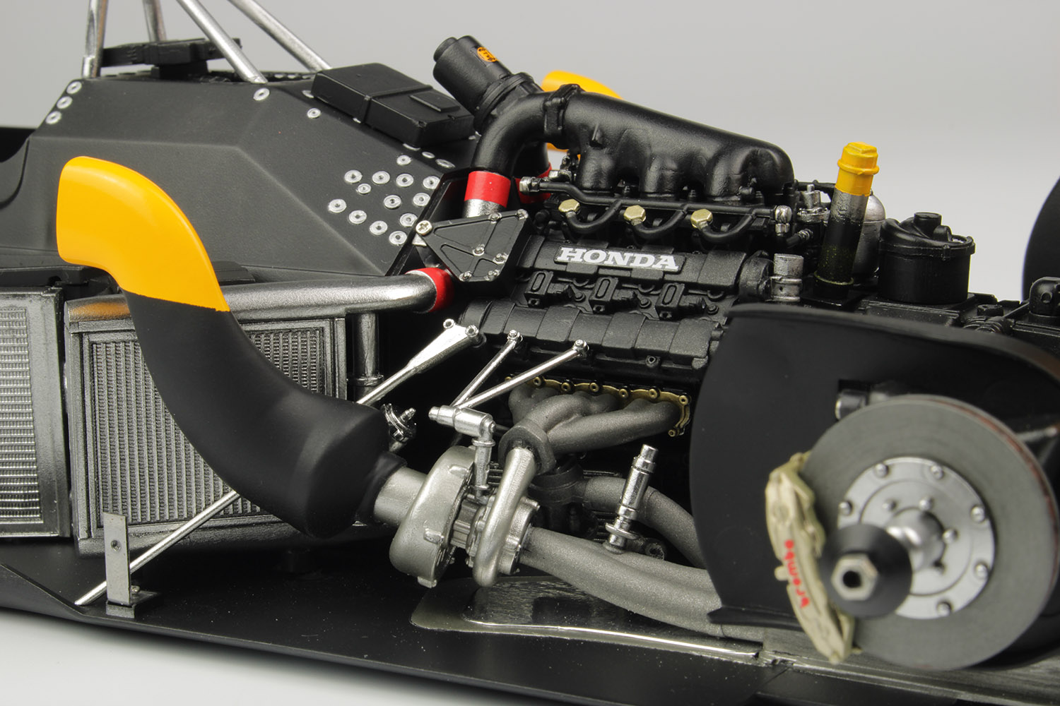 発売されたプラモデルは、クラシックチーム・ロータスの全面協力を得て発売に至っている。モノコックやカウルを正確にモデル化し、カウルは完成後も着脱可能。1.5リッターV6ターボ時代にパワーと燃費のバランスを追求したホンダ・エンジンの存在感は格別で、補機類を含めてリアルに再現されている。