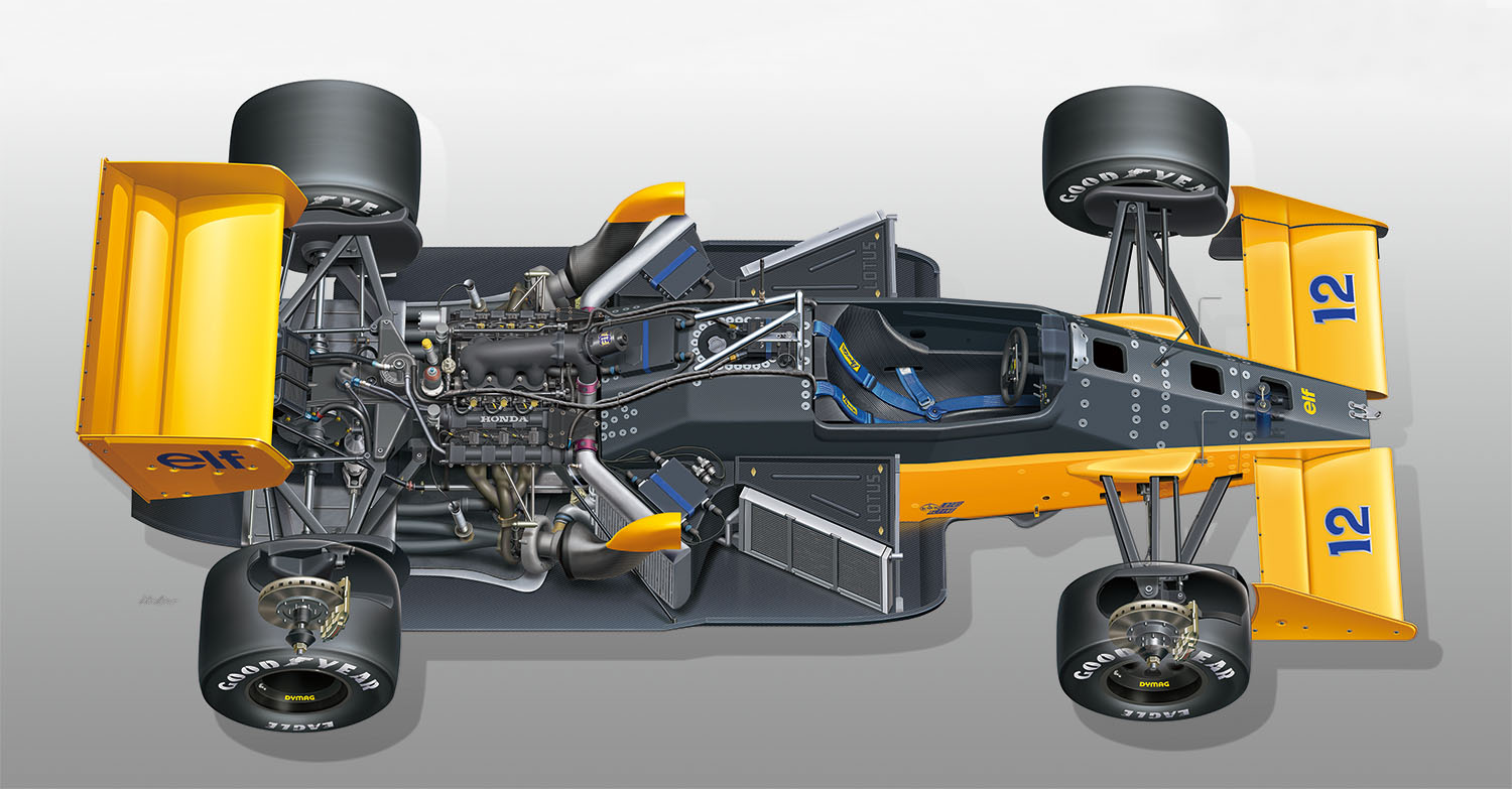 1987年のロータスは、前年までのルノー・エンジンをホンダ・エンジン(1.5リッターV6ターボ)に変更し、ドライバーはアイルトン・セナ選手と中嶋悟選手という陣容だった。マシンはアクティブサスペンションを搭載。油圧で車高を一定に制御することでアドバンテージを得るアイデアを採用していた。デビュー戦のブラジルGPでセナ選手はリタイア、中嶋選手は7位(当時は入賞は6位まで)だった。しかし、続くサンマリノGPでセナ選手は2位、中嶋選手は6位とそろって入賞。第4戦モナコGPと第5戦デトロイトGPはセナ選手が連勝を飾っている。第7戦英国GPでは、マクラーレン・ホンダのN・マンセル選手が優勝、2位がA・プロスト選手(マクラーレン)、3位セナ選手、4位中嶋選手と、上位をホンダ・エンジンが独占した。