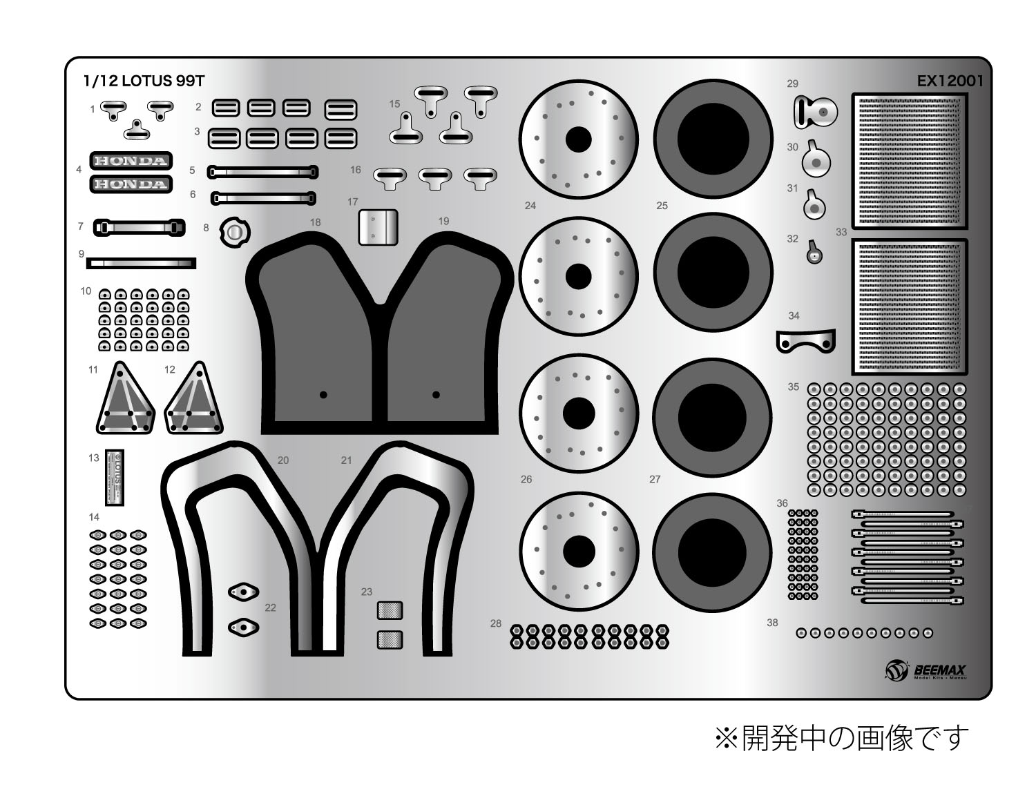 プラッツ/BEEMAX(ビーマックス)は12分の1スケールのプラスチックモデル、ロータス99T・1987年モナコGPウィナーを発売した。完成時の全長は約350㎜と、12分の1スケールならではの迫力が楽しめる。