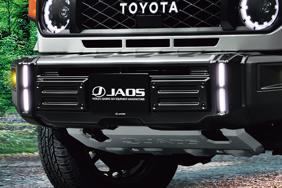 開発コンセプトは「STERLING GEAR GEEK」(本物の道具を愛するマニア)で、本格的なクロスカントリースタイルの演出を追求している。エクステリアパーツは、JAOSブランドをセレクトし、力強い造形のガーニッシュと、アルミ素材で仕上げたアンダーカバーなど、ランクルが挑む過酷なオフロードに似合うスタイリングになっている。