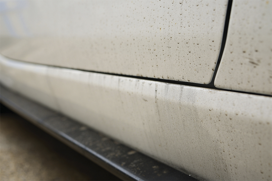 一度ボディ全体を高圧水で洗い流したら、次にボディの洗浄に移るのだが、この際、ボディ下部にも高圧水をしっかり当てることをおすすめしたい。理想を言えば、車体を持ち上げて下回りも洗浄することだが、毎回そのような作業は難しいため、せめて高圧水で洗浄するだけでも、汚れの蓄積を防ぐ効果が期待できる。