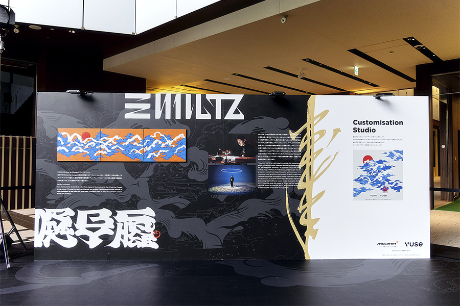 MILTZさんは日本の文字を生かした現代アートの創作に携わっている。江戸文字のエッセンスを生かしたフォントをデザインして、マクラーレンのドライバーと番号を描いた。また、車体サイドには龍が雲を駆け抜けるような図柄が描かれている。